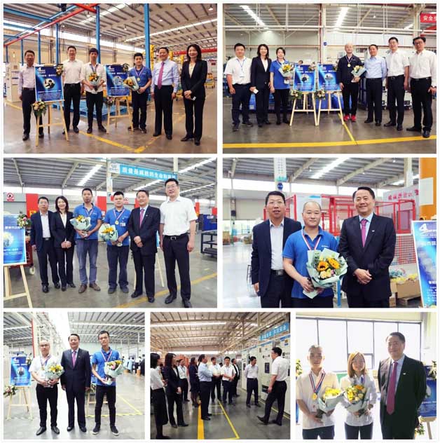 儀式后,吉主席等一行領導還特別慰問了一線工人,并為“愛崗敬業、最美勞動者”獲獎人員進行現場頒獎,吉主席親手送上的鮮花和金燦燦的獎牌給予了他們莫大的鼓舞,同時也激勵著所有電氣人向最美看齊,看優秀看齊!