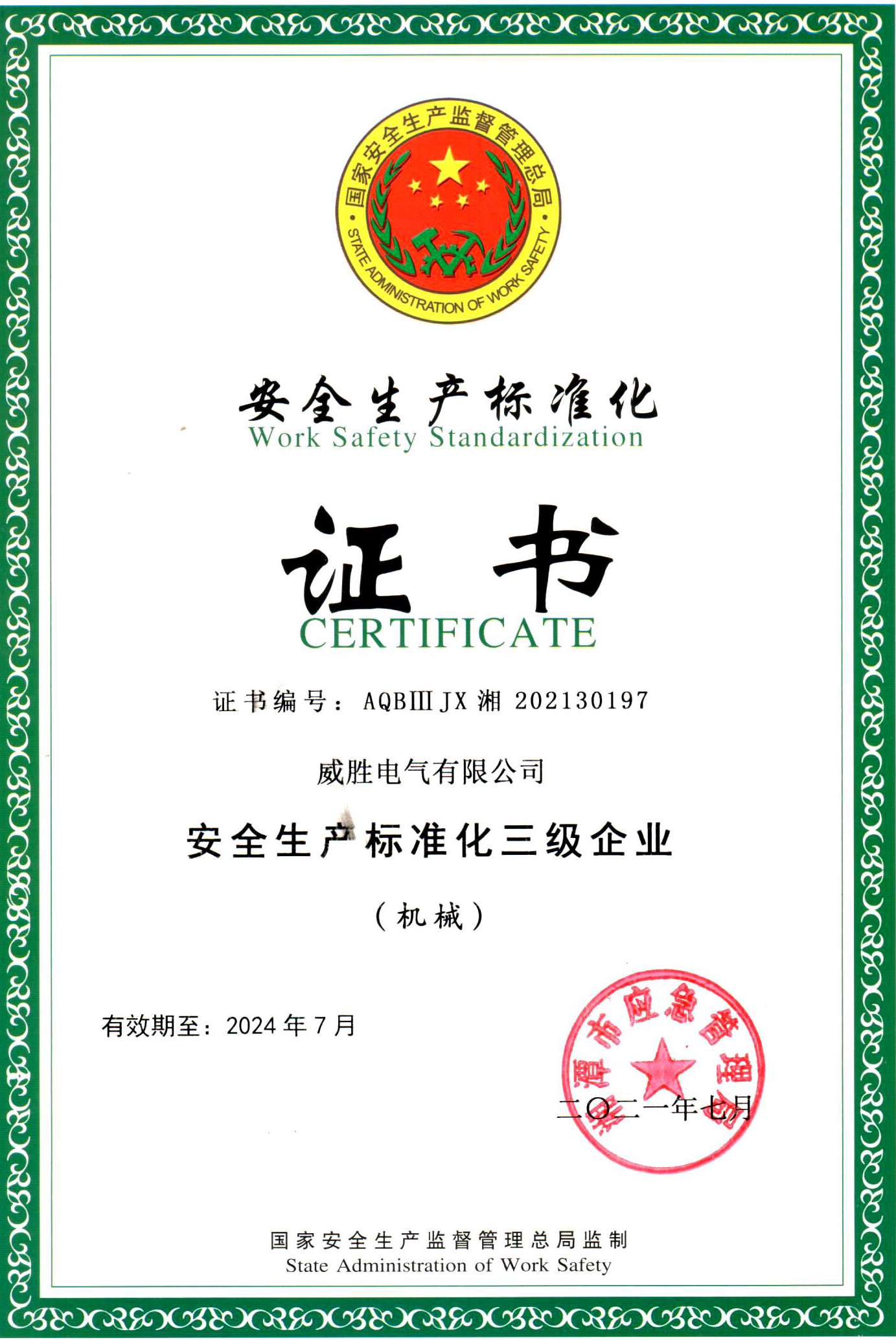 安全生產(chǎn)標(biāo)準(zhǔn)化三級證書