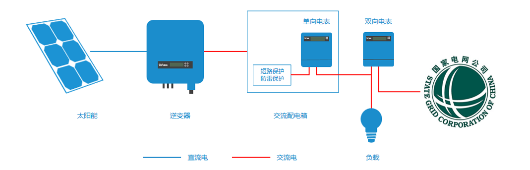 1、陽光發(fā)電,可為負(fù)載供電,也可售電給電網(wǎng)