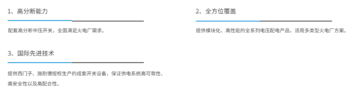 對于中壓系統,發電機組發出的電能,一部分升壓輸送到輸電網,另外一部分通過雙分裂高壓廠用工作變壓器。威勝電氣提供KYN28中壓開關柜柜及西門子授權柜NXAirs中壓開關柜滿足中壓配電線路保護及控制要求。