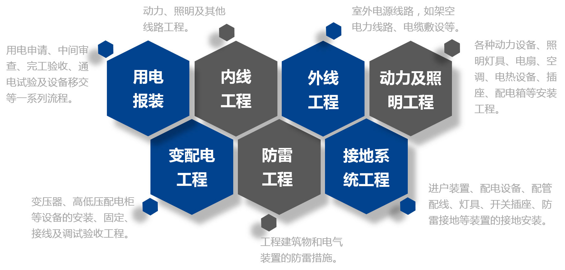 我們通過嚴謹適宜的設計、精益有效的采購、嚴格規范的施工和智慧簡單的運維,建設并運營一個由安全可靠的智能設備組成的堅強優化的配用電系統,向業主提交一套持續優質的配電資產。