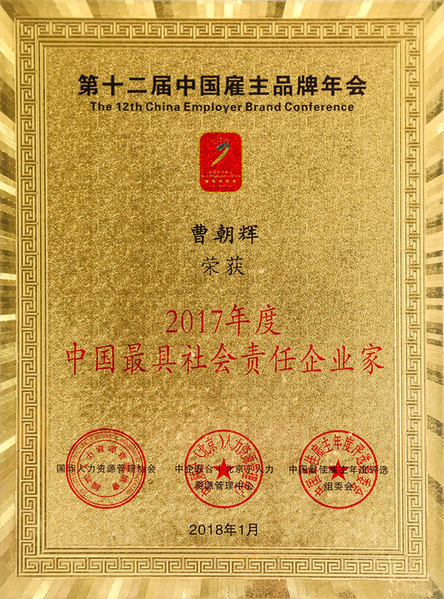 中國雇主品牌論壇組委會經(jīng)多年最佳雇主調(diào)研數(shù)據(jù)庫和《北大商業(yè)評論》、《中國品牌》、搜狐財經(jīng)、新浪財經(jīng)等20多家合作媒體評審,威勝電氣有限公司榮獲2017年度中國最佳雇主企業(yè),曹朝輝董事長榮獲中國最具社會責任企業(yè)家。