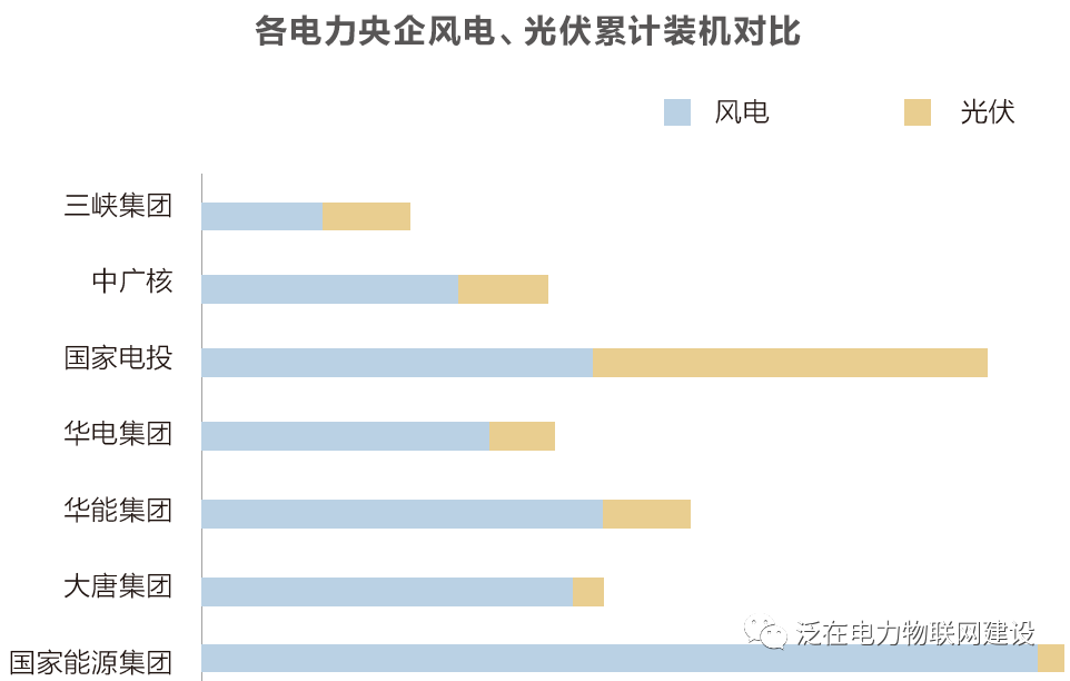 不難發現,中廣核、三峽集團的新能源累計裝 機容量正在向五大發電集團逼近,未來亦將成為風光資源強有力的競爭者。