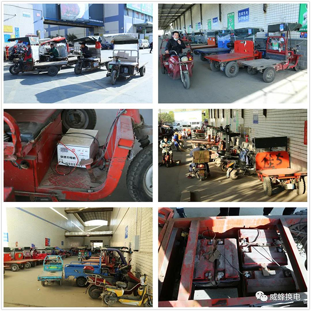 1300余臺輕型運輸車輛(電動三輪為主)是場內(nèi)主要的裝卸、運輸工具,這也造成其巨大的充電需求,如何布置更多充電樁滿足充電需求,如何合理規(guī)劃充電樁停車位占用、如何確保充電樁安全有序運行等一直是困擾市場管理方、商戶的頭號問題。威蜂換電團(tuán)隊敏銳的捕捉到了這一客戶心聲,通過前期積極與紅星冷鏈管理層進(jìn)行溝通,最終成功獲得客戶信賴,我們牽手央企頭部運營商,一同啟動了紅星冷鏈的場內(nèi)電三輪換電改造試點。
