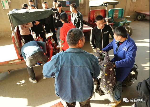 在我們現(xiàn)場改造的同時,周邊的三輪師傅們也紛紛圍觀,據(jù)師傅們介紹,場內(nèi)傳統(tǒng)的充電樁需要繳納兩筆費用,一筆是充電位年費600元,一筆是實際充電電費,算起來一年在充電上面要花費的錢逼近千元,伴隨而來的是巨大的時間成本。由于場內(nèi)電三輪充電區(qū)域緊湊,新老、品質(zhì)不一的電三輪充電安全隱患問題也成為了他們心病。師傅們親眼看到換電改造如此快捷,了解到換電流程如此簡單后,紛紛表示想嘗鮮咱們的換電新技術(shù)!