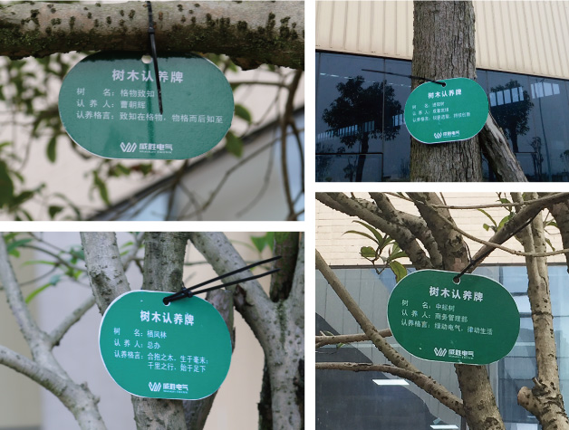 活動開始后,大家興致勃勃地給認養的樹木掛上了認養牌,一塊塊認養牌都源于生產一線的工人利用邊角廢料精心切割而成,牌面上記錄著大家對產業園區別樣的情懷。